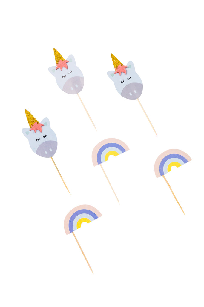 • Small pink rainbow and blue unicorn cupcake toppers 6/pc