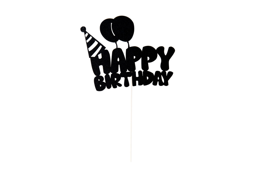 Black happy birthday balloon cake topper DIY kit